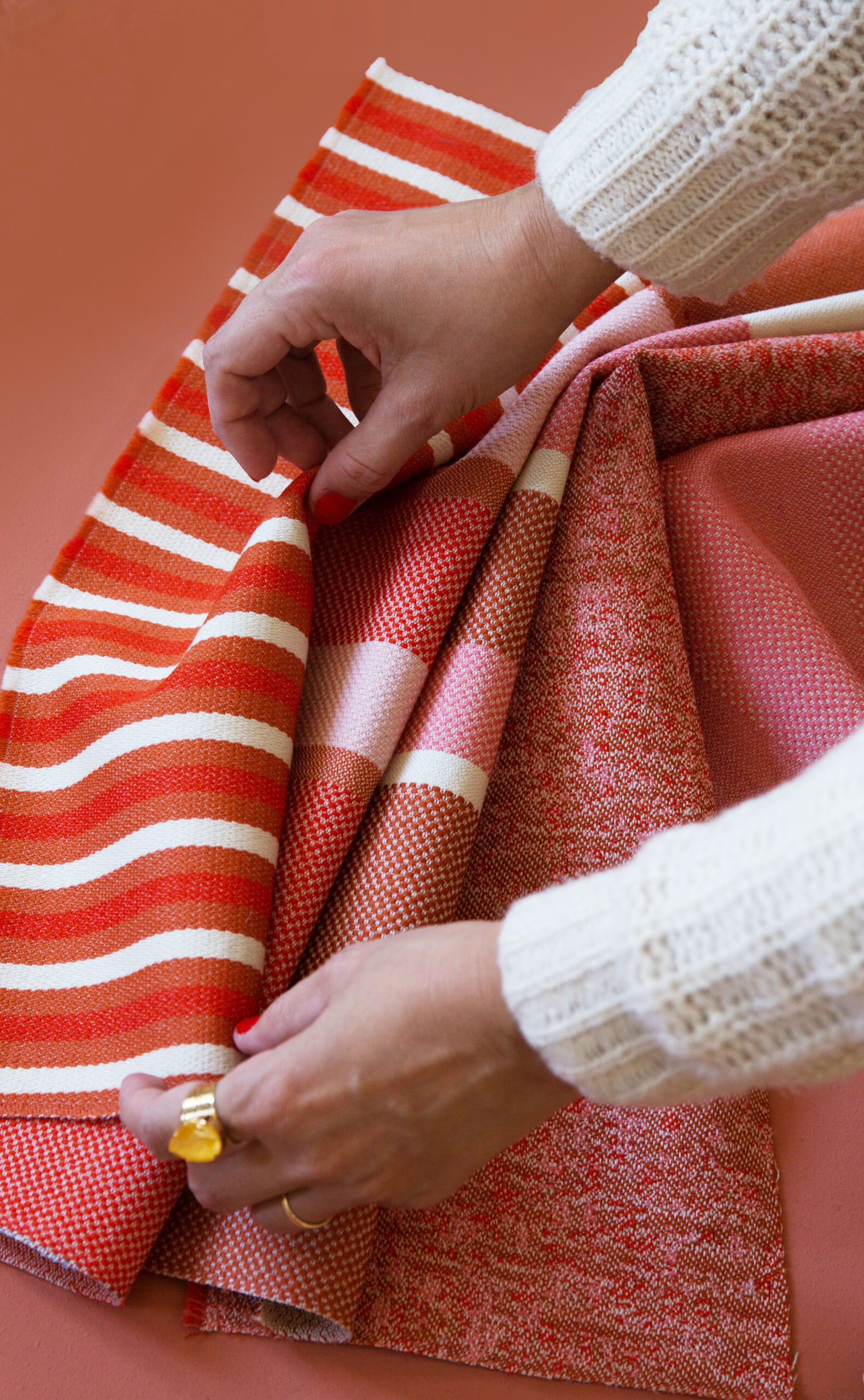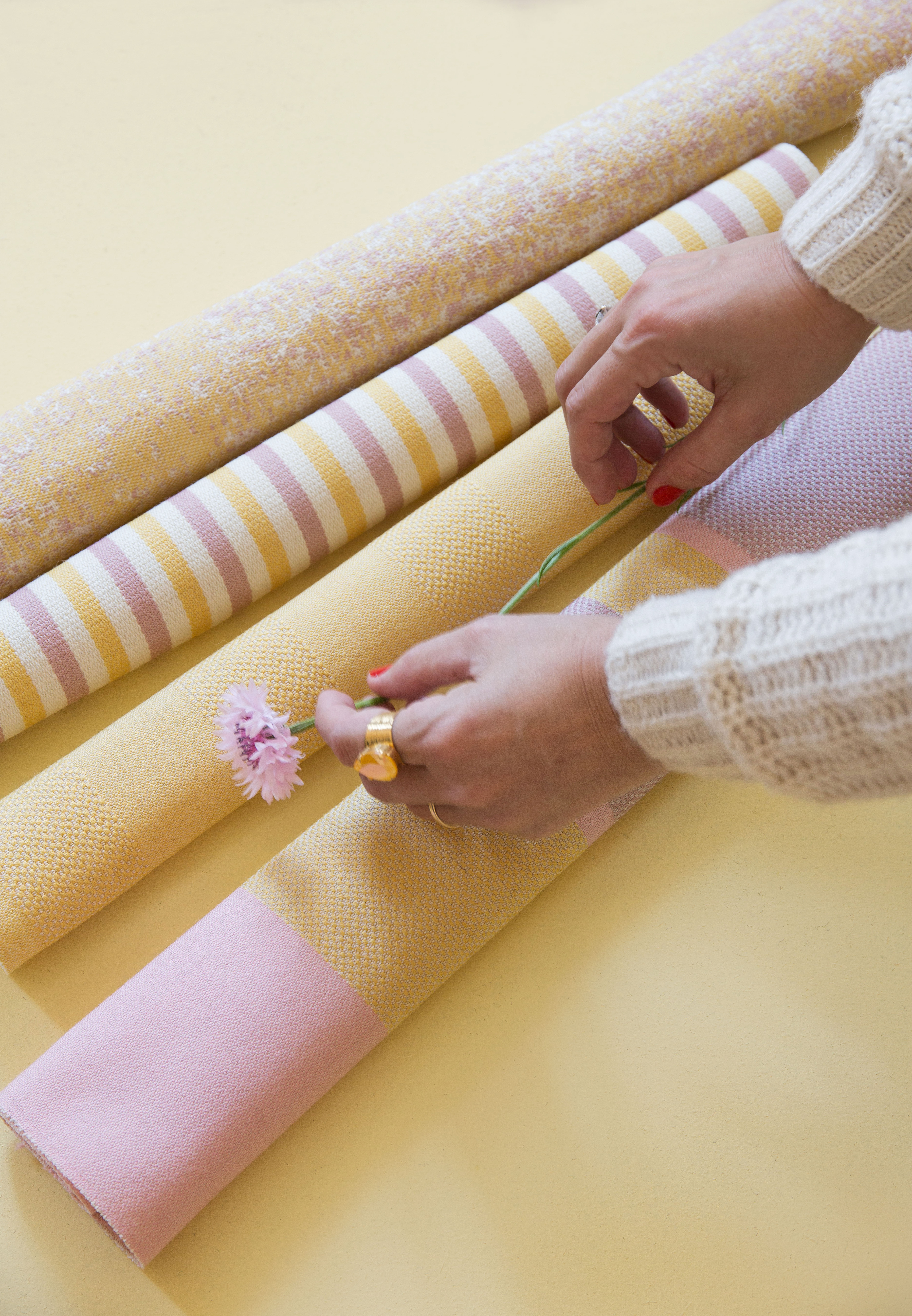 Rikke designer tekstilene selv. I samarbeid med Innvik blir det til et mønster man er fornøyd med. Dette er ofte en kreativ prosess frem og tilbake, for å få det uttrykket og de rette fargekombinasjonen som man ønsker.